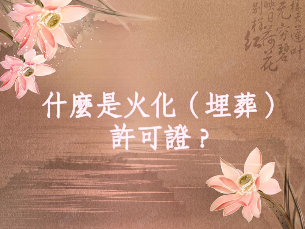 在台灣親人過世後,遺體的殮葬方式多以火葬或土葬的方式處理,然而為了避免犯罪者以火化或埋葬的名義來銷毀或隱藏屍體,因此遺體的火化與埋葬都需要取得直轄市、縣市主管單位的核准。因此在親人往生,取得死亡證明書後,還需要在出殯前申請火化(埋葬)許可證。